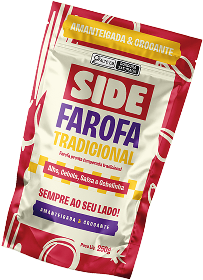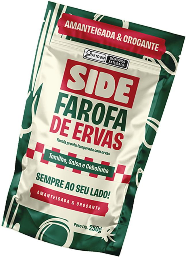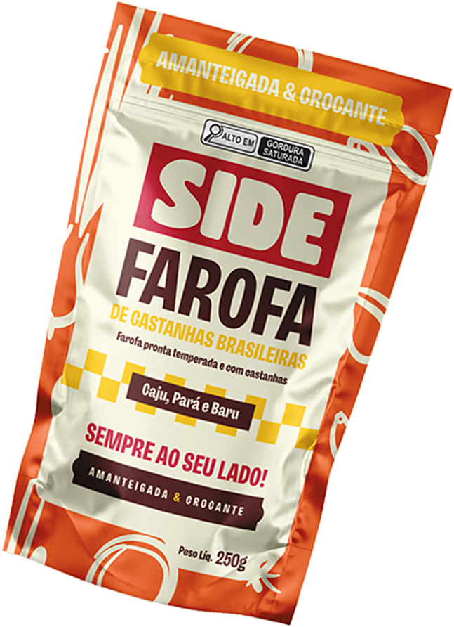 A marca SIDE chega com o objetivo de levar para a casa dos brasileiros uma versão especial desse prato típico da culinária brasileira, com sabores e ingredientes naturais e um blend de farinhas. Além disso, nesse lançamentos um dos sabores únicos e exclusivos no mercado, a Farofa de Castanhas Brasileiras combina a castanha-do-pará, baru e a castanha de caju.